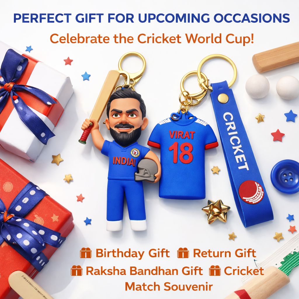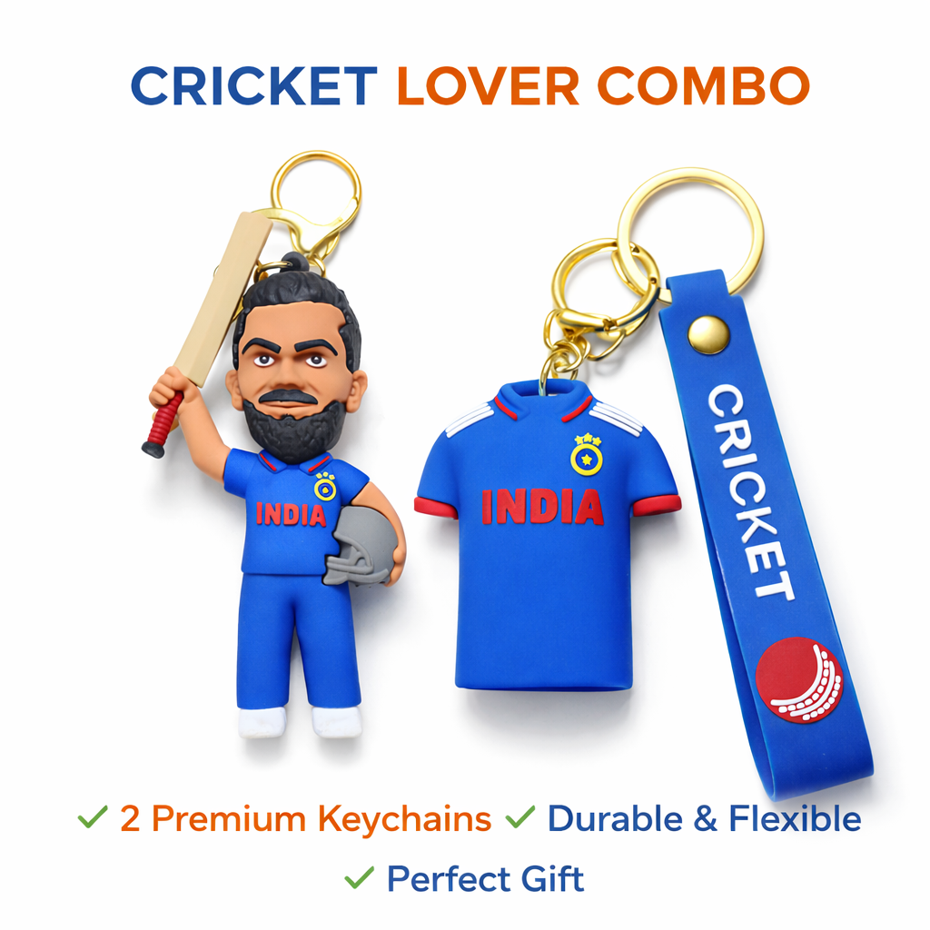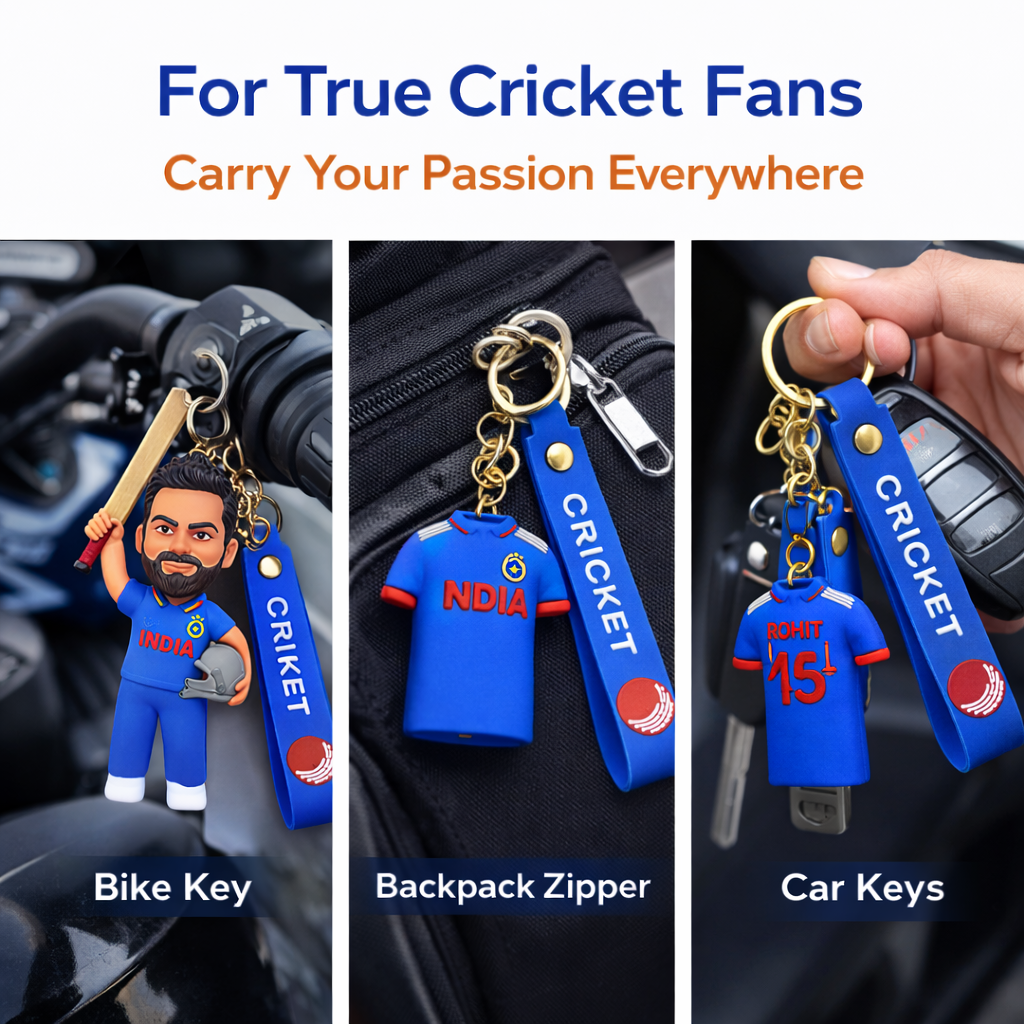 Show your love for cricket with the Every Needs Cricket Player Cartoon Keychain. Designed in a detailed sports theme, this keychain features a cricket player figure holding a bat along with a jersey-style pendant.