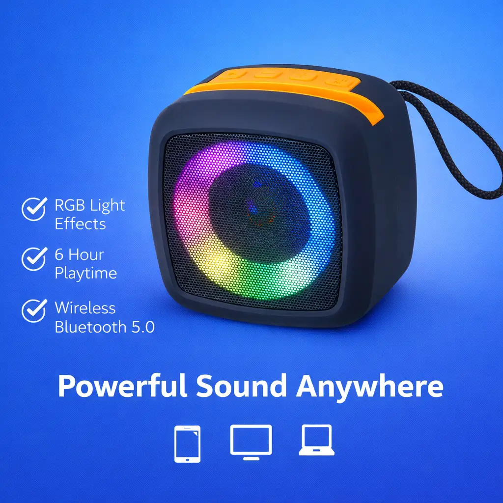 Portable Bluetooth Speaker with LED Lights – Rechargeable Wireless AudioPortable Bluetooth Speaker with LED Lights – Rechargeable Wireless Audio