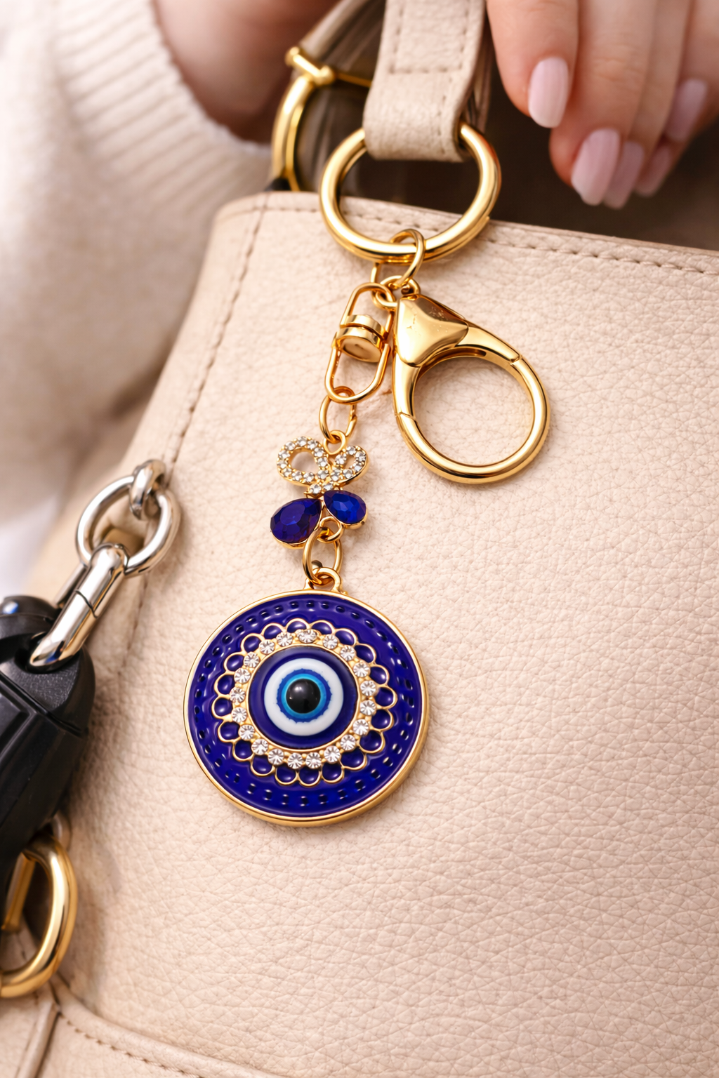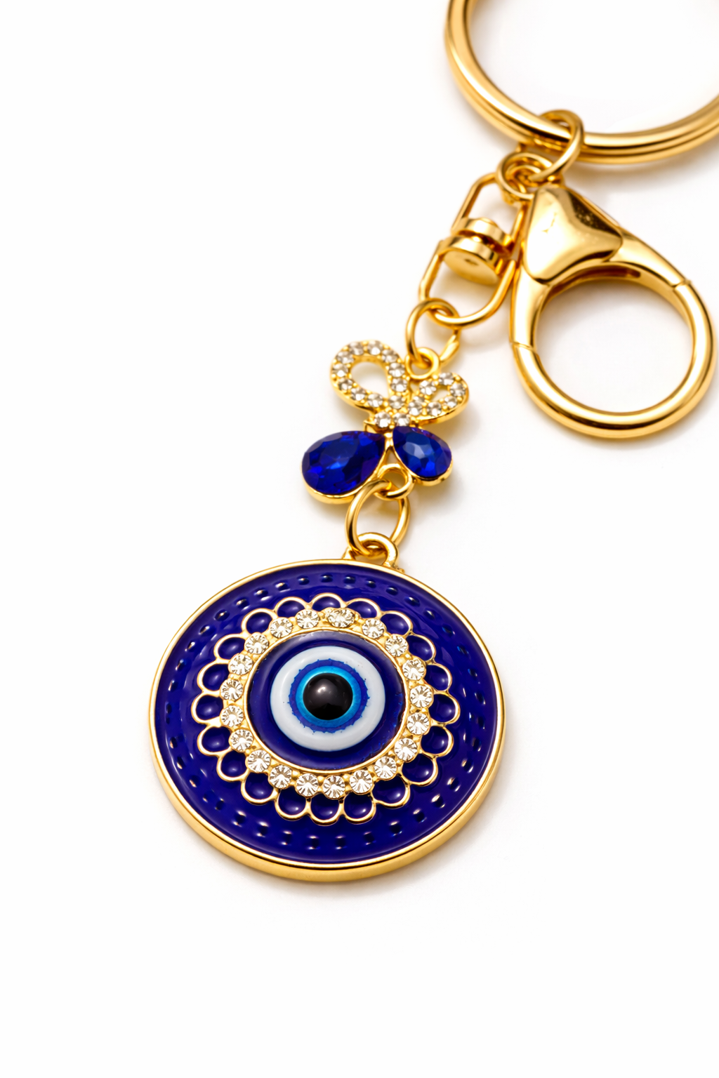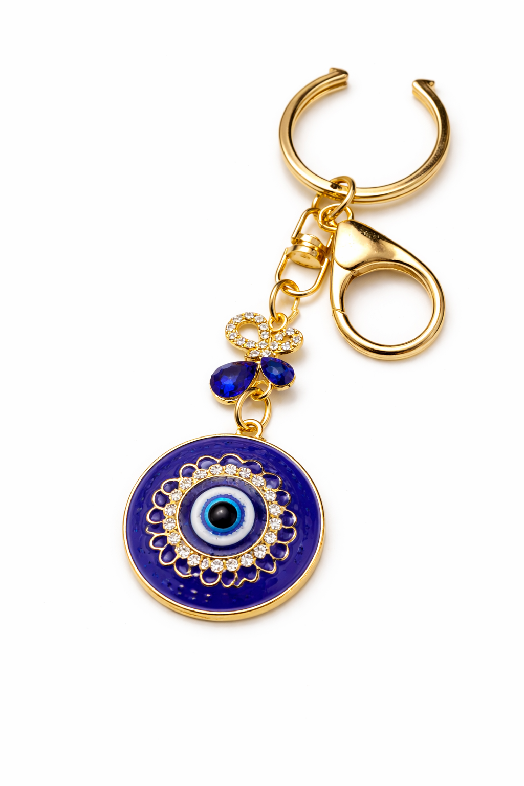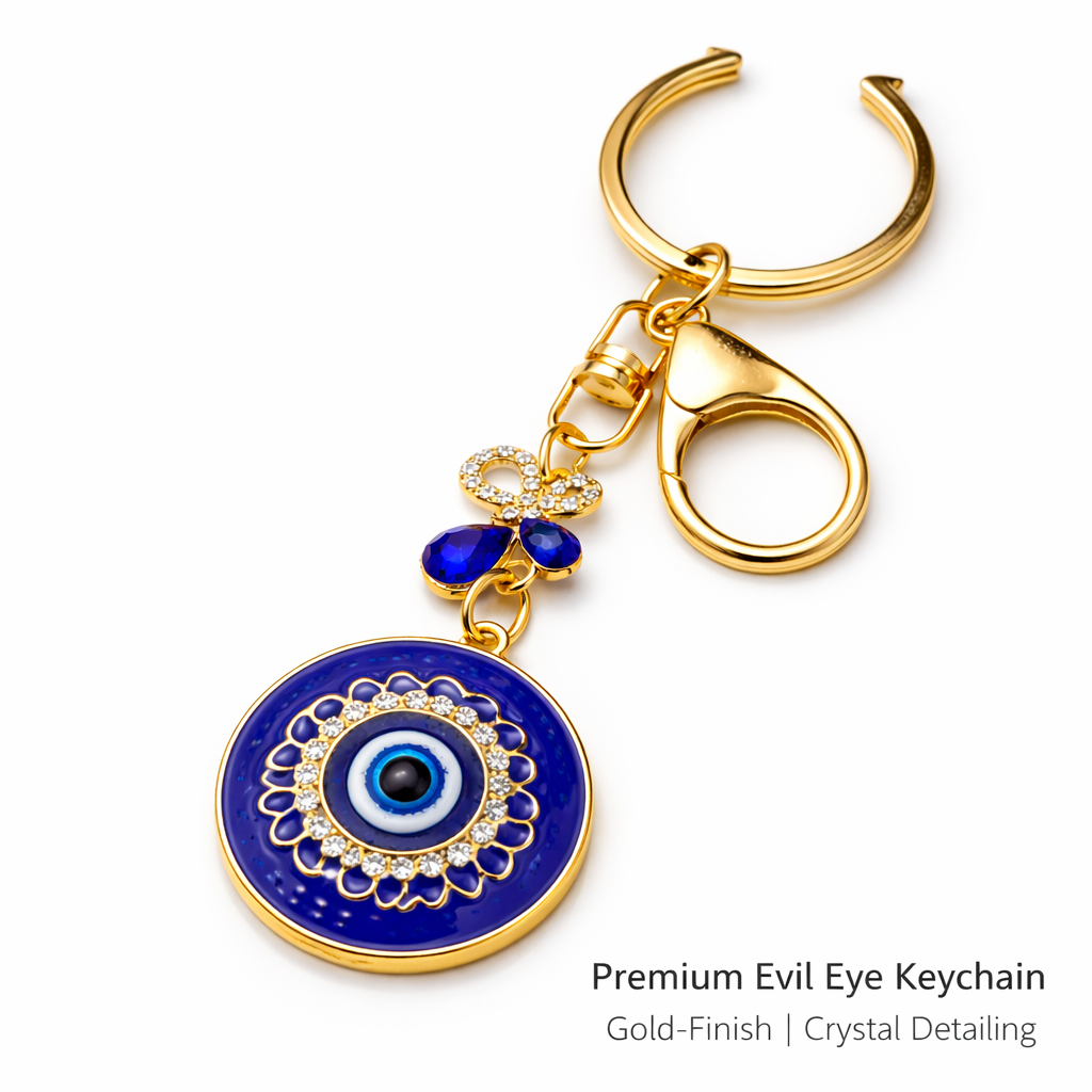 The Evil Eye motif is traditionally associated with protection and positivity. Designed with a secure lobster clasp and sturdy key ring, this keychain is suitable for house keys, car keys, handbags, backpacks, or gifting.